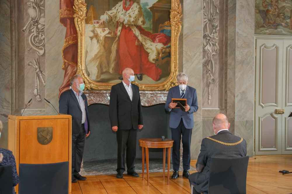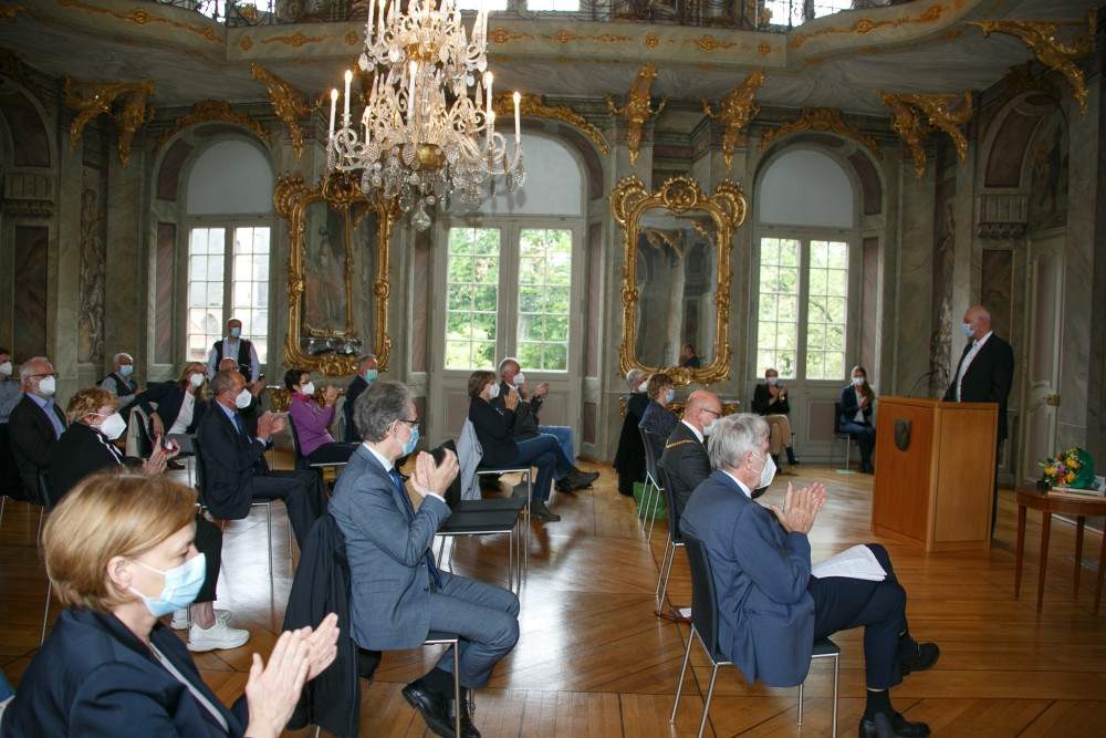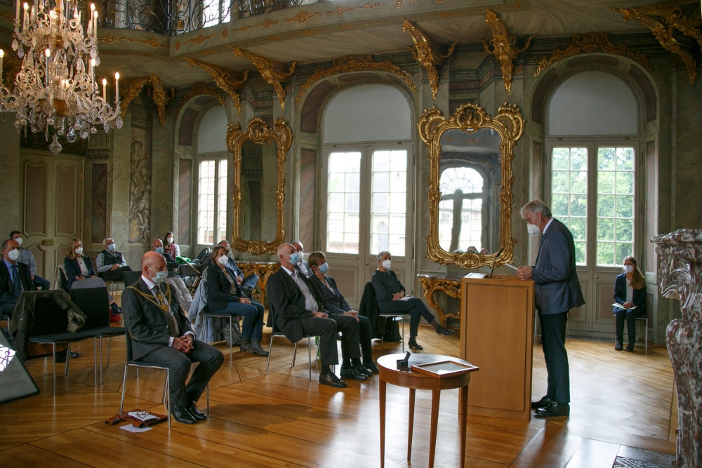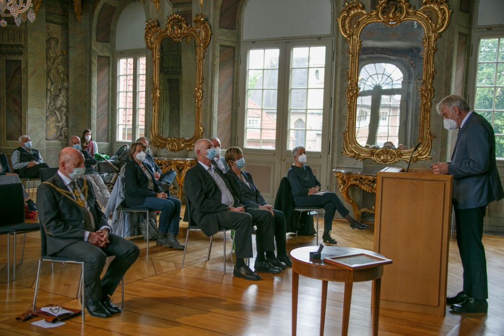 Pandemiebedingt konnte der Goldene Ginkgo 2020 leider nicht im gleichen Jahr auf der in Münster geplanten Veranstaltung an Heiner Bruns übergeben werden. Auf Einladung von Bürgermeister Markus Lewe sind die Feierlichkeiten am 27. Mai 2021 als Präsenzveranstaltung im kleineren Kreis nachgeholt worden. Die Laudatio sprach Dorios Törkel, Düsseldorf.