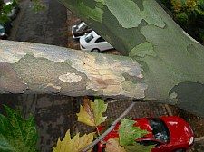 - Durch die starke Totholzbildung verkahlen die Bäume von unten nach oben und von innen nach außen. Hauptsächlich an großen und alten Platanen führt dies zu erheblichen statischen Problemen.