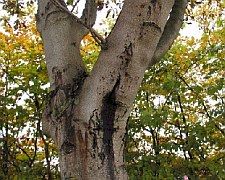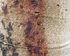 Abb.1 auffälligstes Symptom sind dunkle Leckstellen auf der Rinde. Seit dem Jahr 2002 wurde in den Niederlanden innerhalb weniger Jahre eine neue Erkrankung an Rosskastanien beobachtet, wobei mehrere Arten bzw. Hybriden innerhalb der Gattung betroffen waren. Auffälligstes Symptom sind dunkle Leckstellen auf der Rinde (Abb. 1).