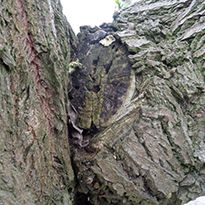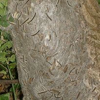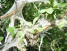 Larven im GespinnstDie durch die Raupen verursachten Kahlfraßschäden werden von der Öffentlichkeit mit Besorgnis wahrgenommen und werden z.T. mit dem für den Menschen gefährlichen Eichenprozessionsspinner verwechselt.