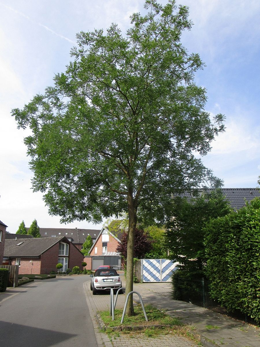 Heilbronn: Wuchs kegelförmig, überhängende Äste, später kugelförmig und Befall mit Läusen. Gesamtwirkung mittel, Eignung als Straßenbaum gering bis mittel. 2015: Ei- bis kugelförmige, lockere Krone, Äste überhängend, breit und ausladend. Leichte Blatt- und Trockenschäden. Hoher Schnittaufwand, durch fehlende Leittriebbildung. Starke Blütenbildung, Fruchtbehang. Mittlere bis schlechte Gesamtwirkung, geringe Eignung als Straßenbaum.