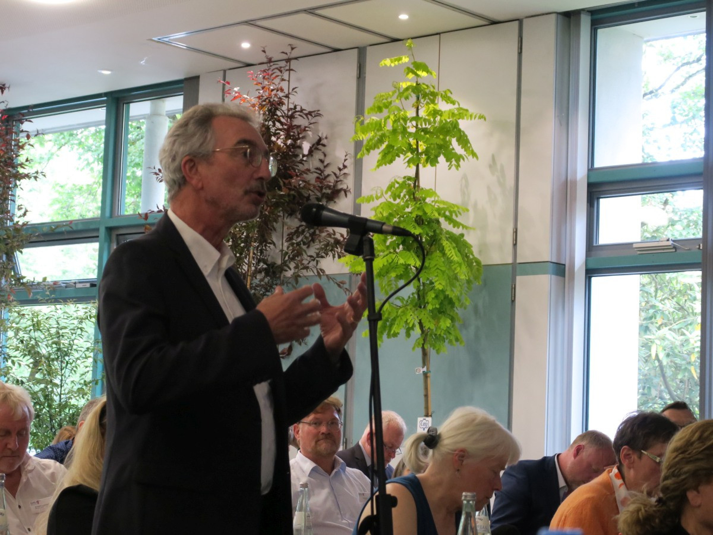 Die 66. Deutsche Gartenamtsleiterkonferenz war von zahlreichen Berichten aus den sehr aktiven Arbeitskreisen und einen intensiven Austausch der Kolleginnen und Kollegen geprägt. Ministerialdirigent Helmut Alda (Leiter der Unterabteilung "Natürlicher Klimaschutz") hat einen aktuellen Überblick zur Umsetzung des Aktionsprogramms Natürlicher Klimaschutz und die unterschiedlichen Fördermöglichkeiten für Städte und Gemeinden gegeben. In der anschließenden Diskussion wurde von den Teilnehmenden viel Lob für die unkompliziert Handhabe der Förderung zum Stadtgrün geäußert. Neben der einfachen Handhabbarkeit des Förderprogramms wurde der sehr nah an der Praxis orientierte Zuschnitt der Förderung gelobt. Gleichzeitig wurde von den Anwesenden eindringlich auf die Notwendigkeit der langfristigen und kontinuierlichen Ausrichtung der Förderung für die nächsten Jahre verwiesen. Nur so kann dieser sehr gute und wichtige Ansatz für die Umsetzung des natürlichen Klimaschutzes, der gleichzeiitg der Klimaanpassung und der Förderung der Biodiversität dient, einen wirksamen und durch naturbasierten Lösungen getragen Umbaus unserer Städte ermöglichen.