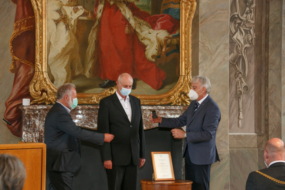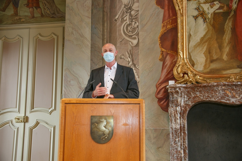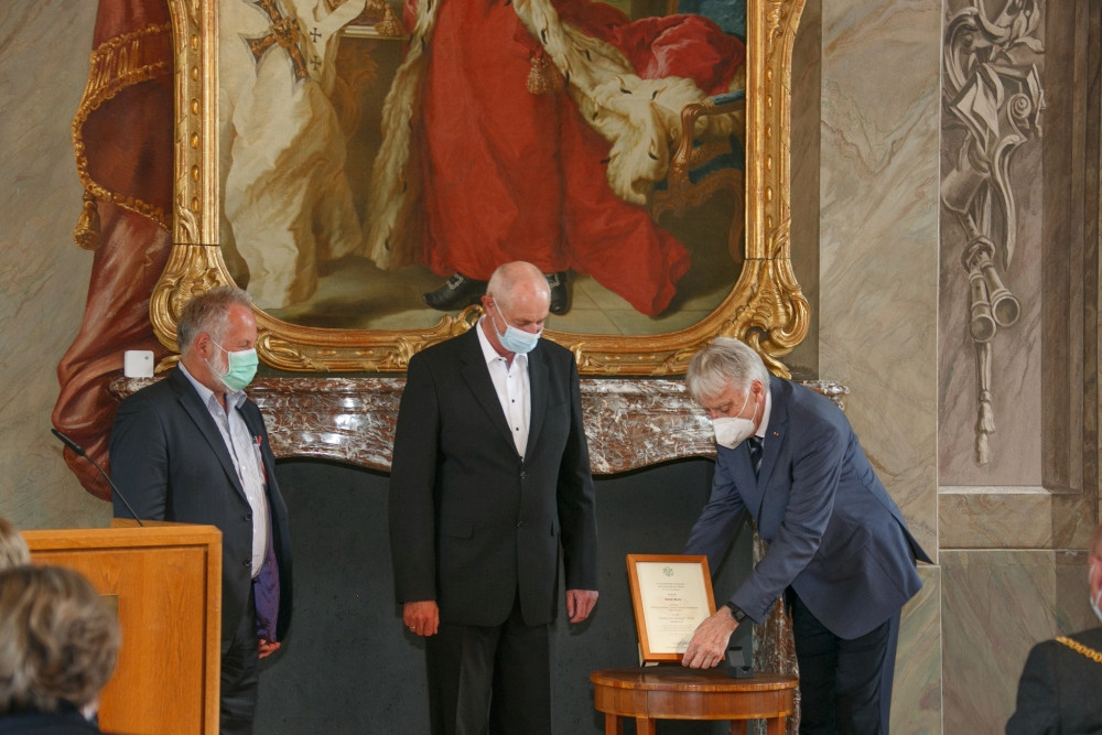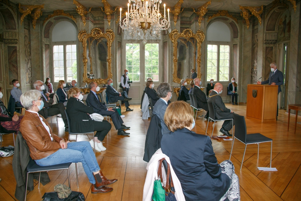 Pandemiebedingt konnte der Goldene Ginkgo 2020 leider nicht im gleichen Jahr auf der in Münster geplanten Veranstaltung an Heiner Bruns übergeben werden. Auf Einladung von Bürgermeister Markus Lewe sind die Feierlichkeiten am 27. Mai 2021 als Präsenzveranstaltung im kleineren Kreis nachgeholt worden. Die Laudatio sprach Dorios Törkel, Düsseldorf.