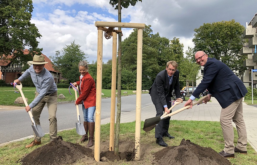 In Schleswig-Holstein haben Ministerpräsident Daniel Günther und Vertreter der Grünen Verbände mit einer öffentlichen Baumpflanzung die zweite Runde der Kampagne #Einheitsbuddeln eingeläutet. Am 4. September gepflanzten sie im Kieler Wohnquartier Anscharpark im Beisein zahlreicher Medienvertreter gemeinsam eine Linde.